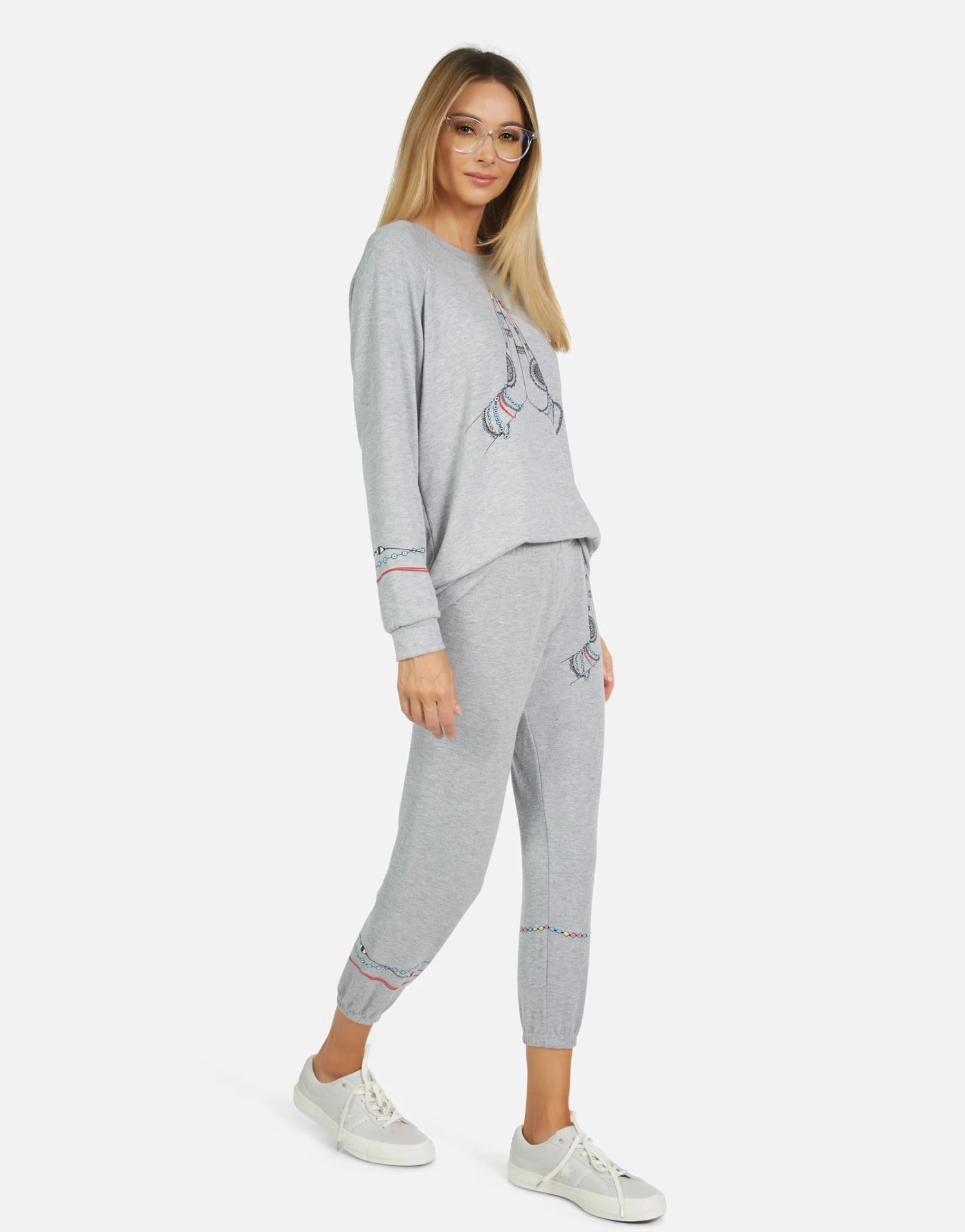 Prayer Hands Printed on Ultra Soft Lightweight Sweatpant in Heather Grey by Lauren Moshi.