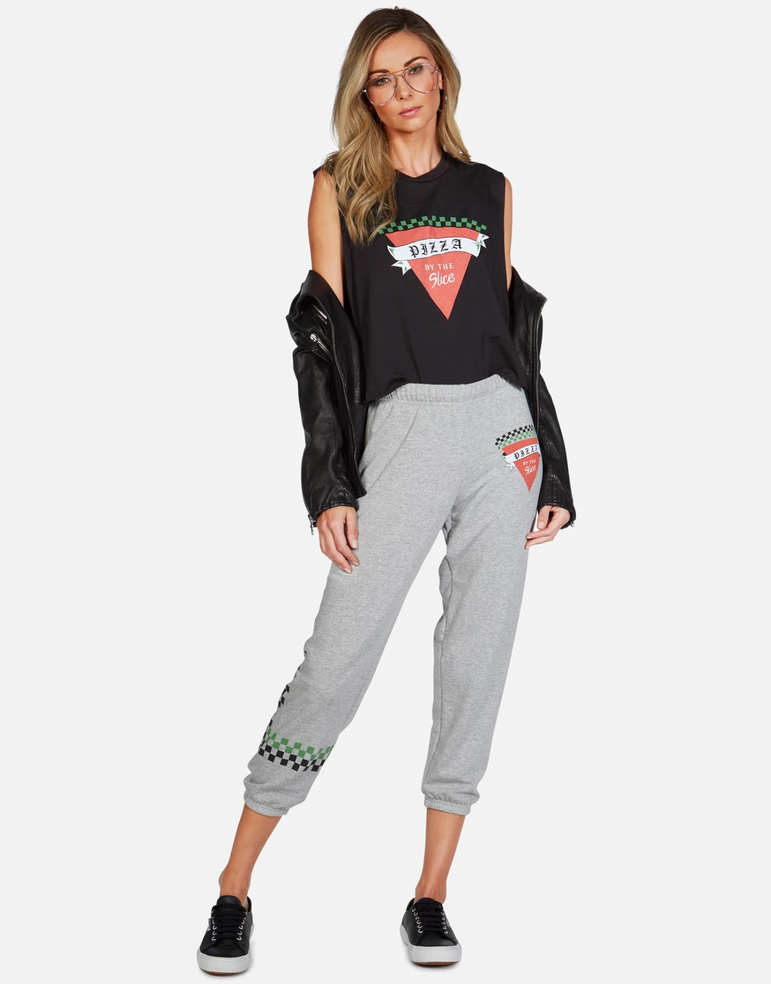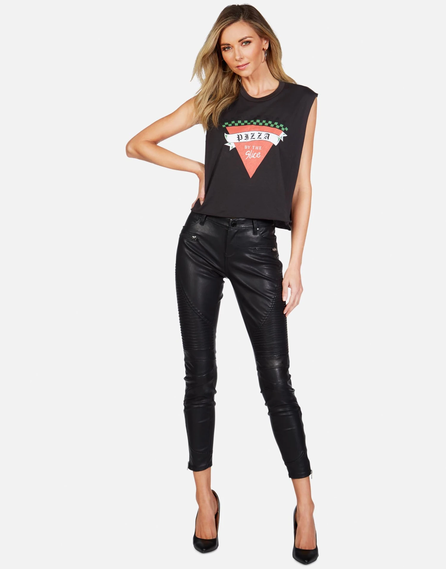 Pizza Slice Printed on Ultra Soft Lightweight Muscle Tank in Onyx by Lauren Moshi.