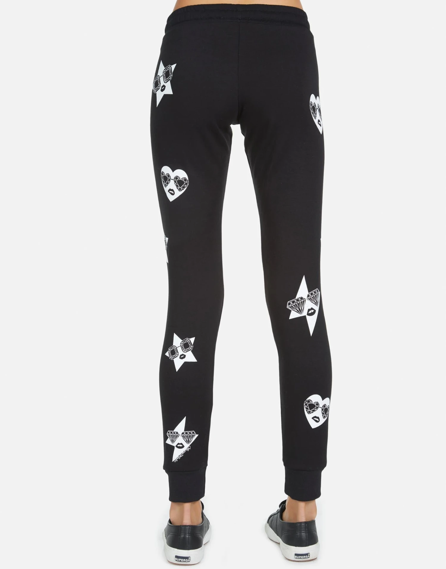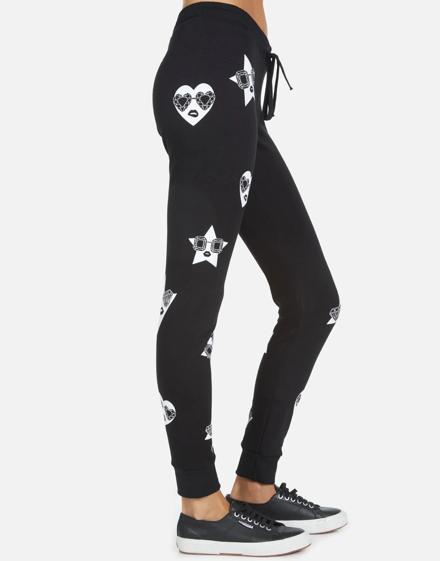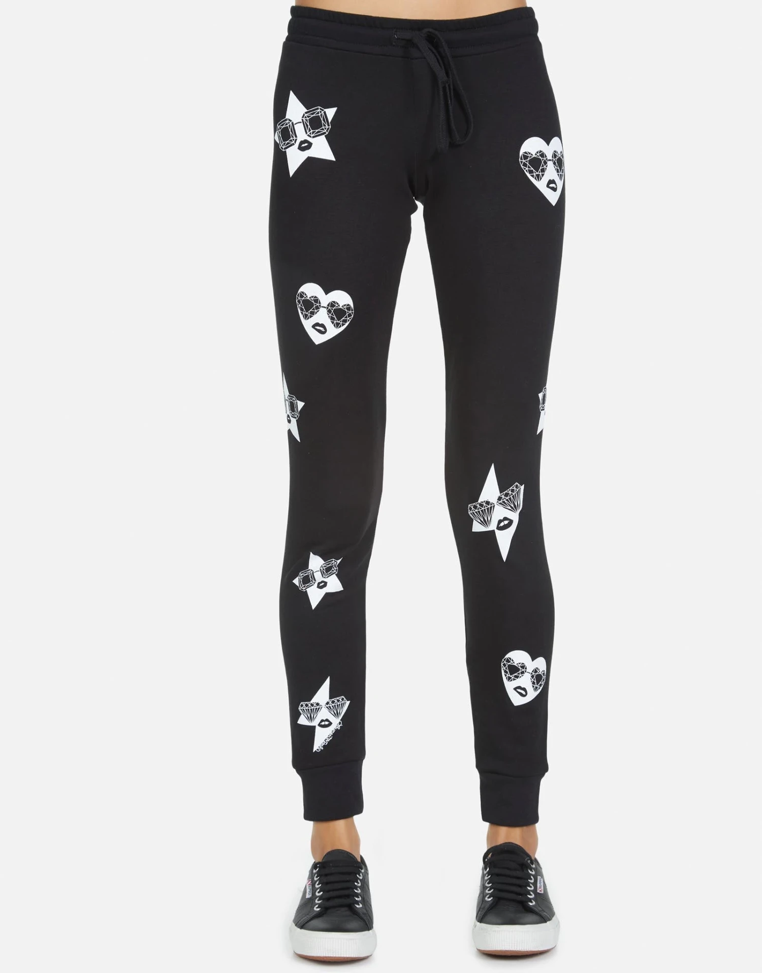 Mini Bling Faces Printed on Ultra Soft Lightweight Sweatpants w/Cuff in Black by Lauren Moshi.