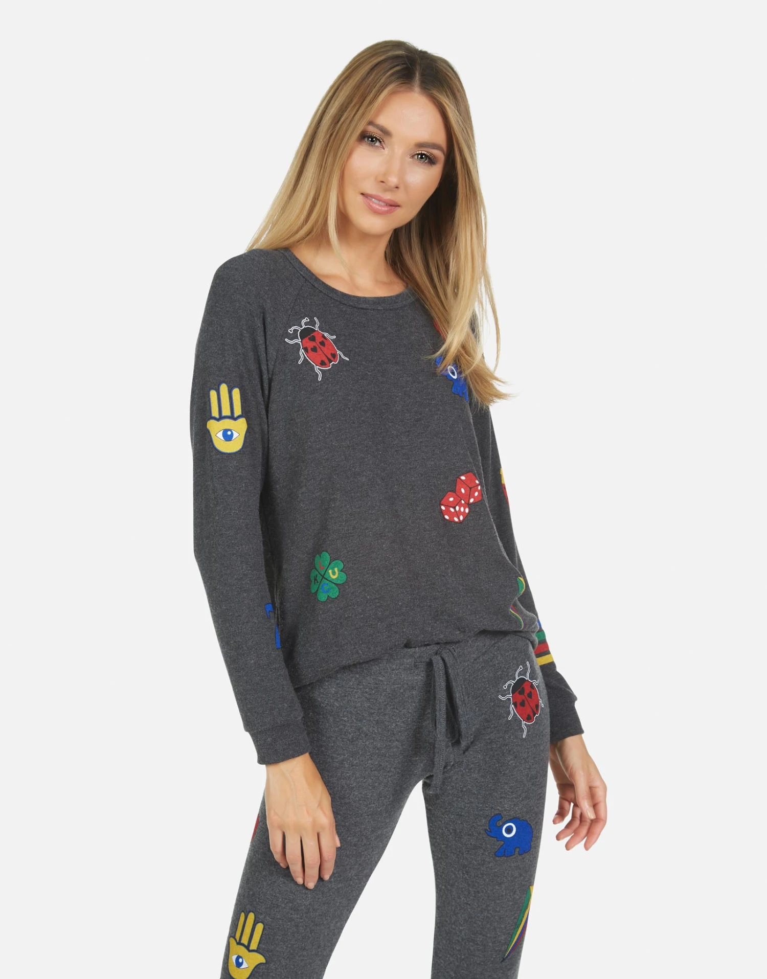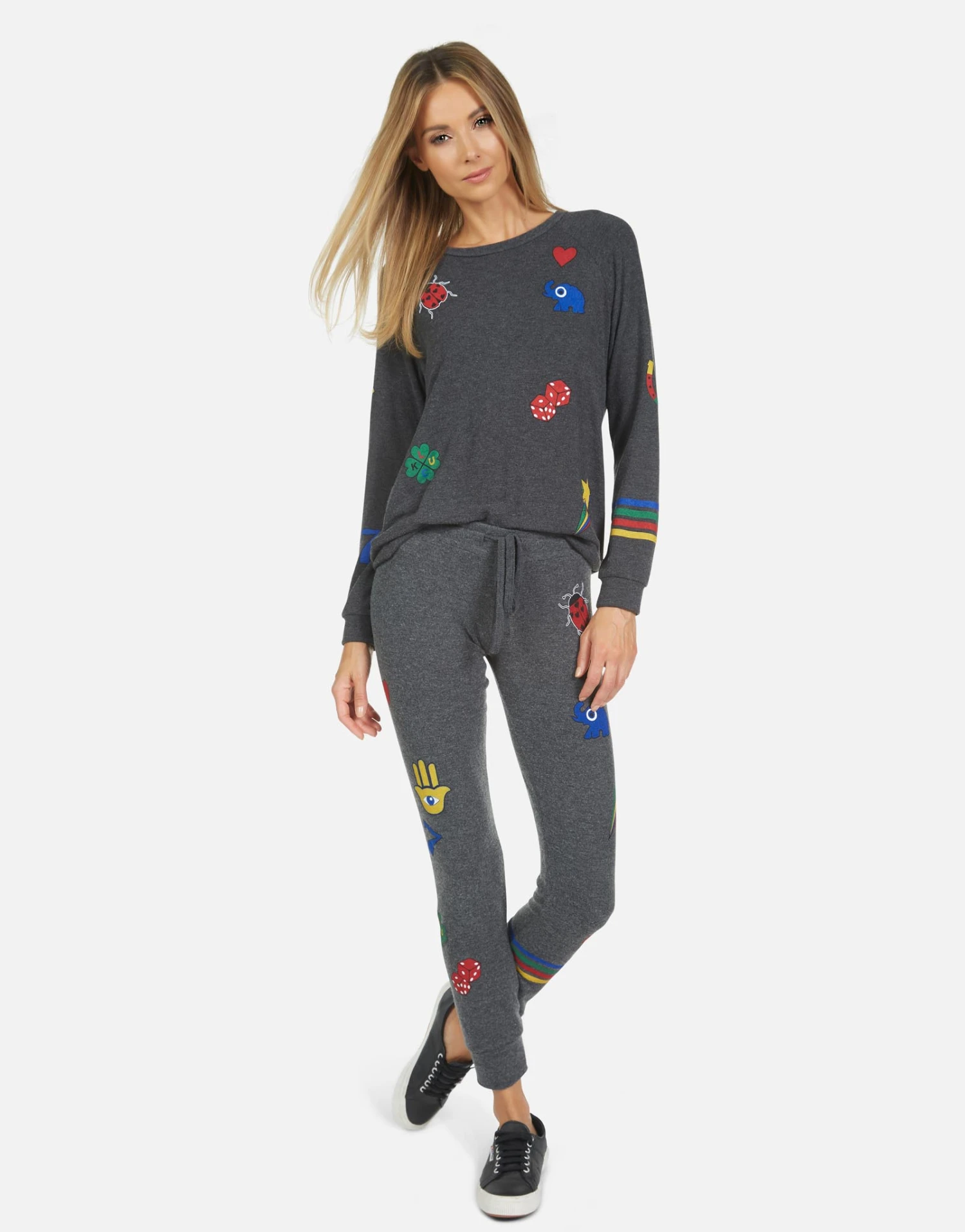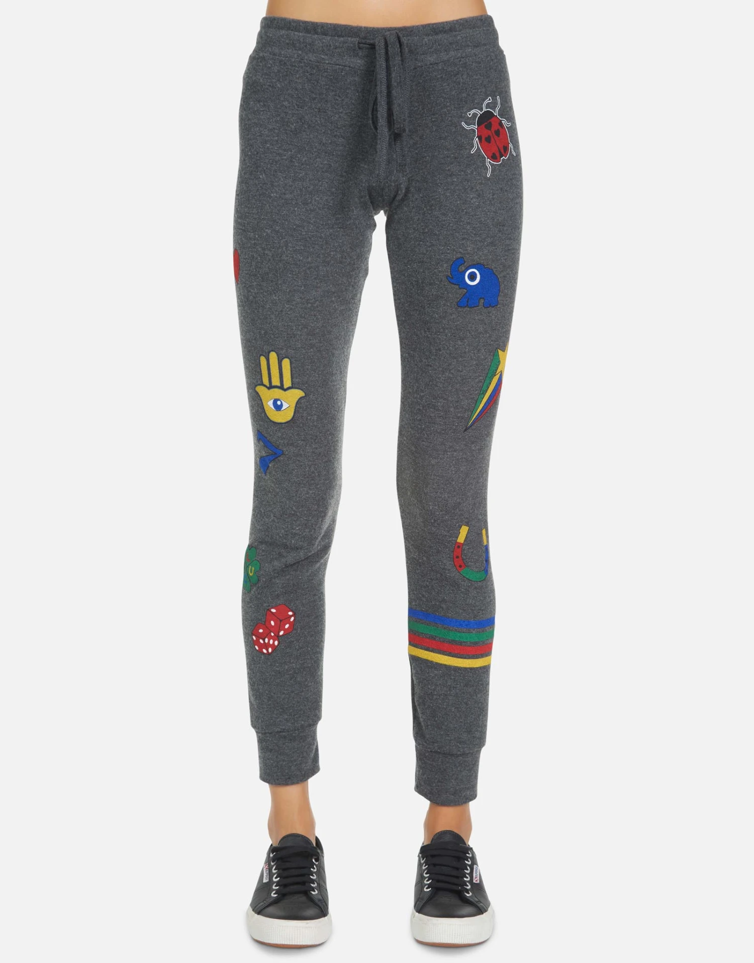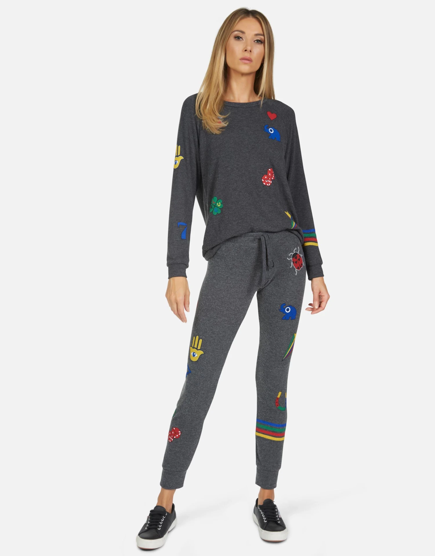 Lucky Elements Printed on Ultra Soft Lightweight Sweatpant in Heather Black by Lauren Moshi.
