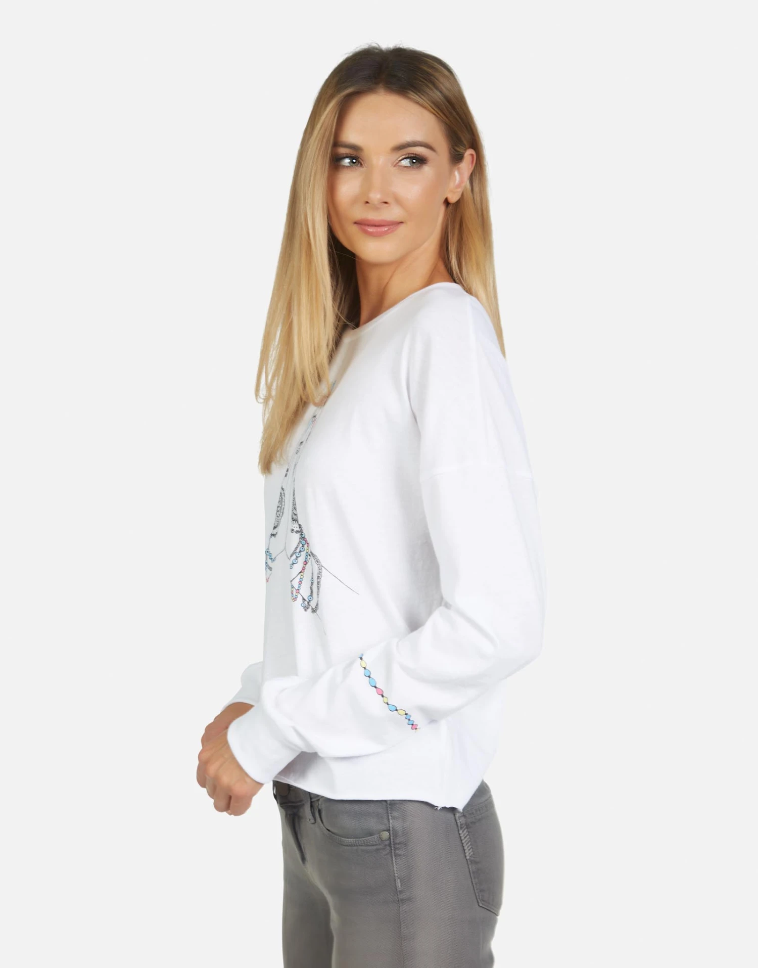 Prayer Hands Printed on Ultra Soft Lightweight Tee in White by Lauren Moshi.