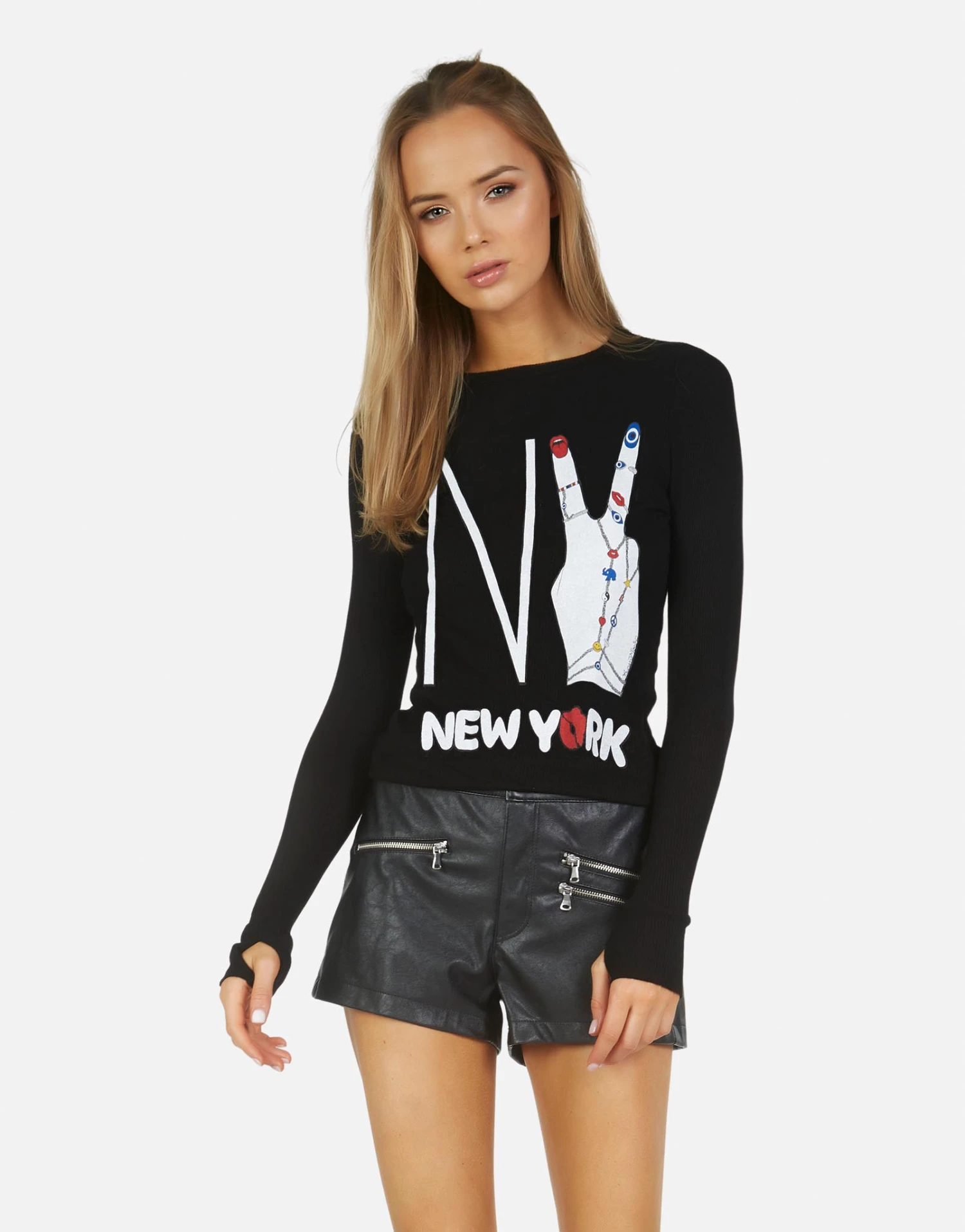 WEB EXCLUSIVE | NY Hand Elements Printed on Ultra Soft Lightweight Thermal in Black by Lauren Moshi.