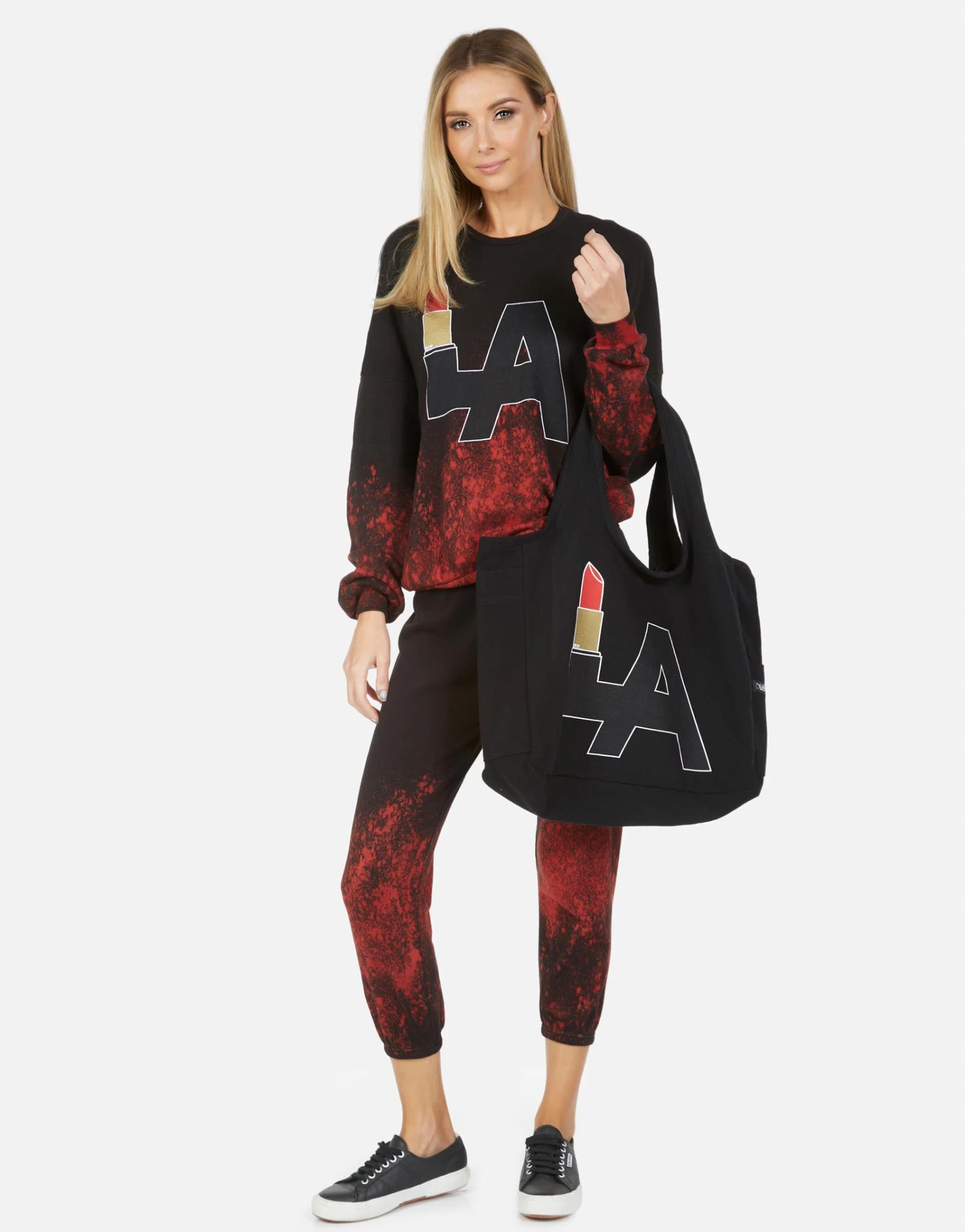 LA Lipstick Printed on Ultra Soft Lightweight Tote Bag in Black by Lauren Moshi.
