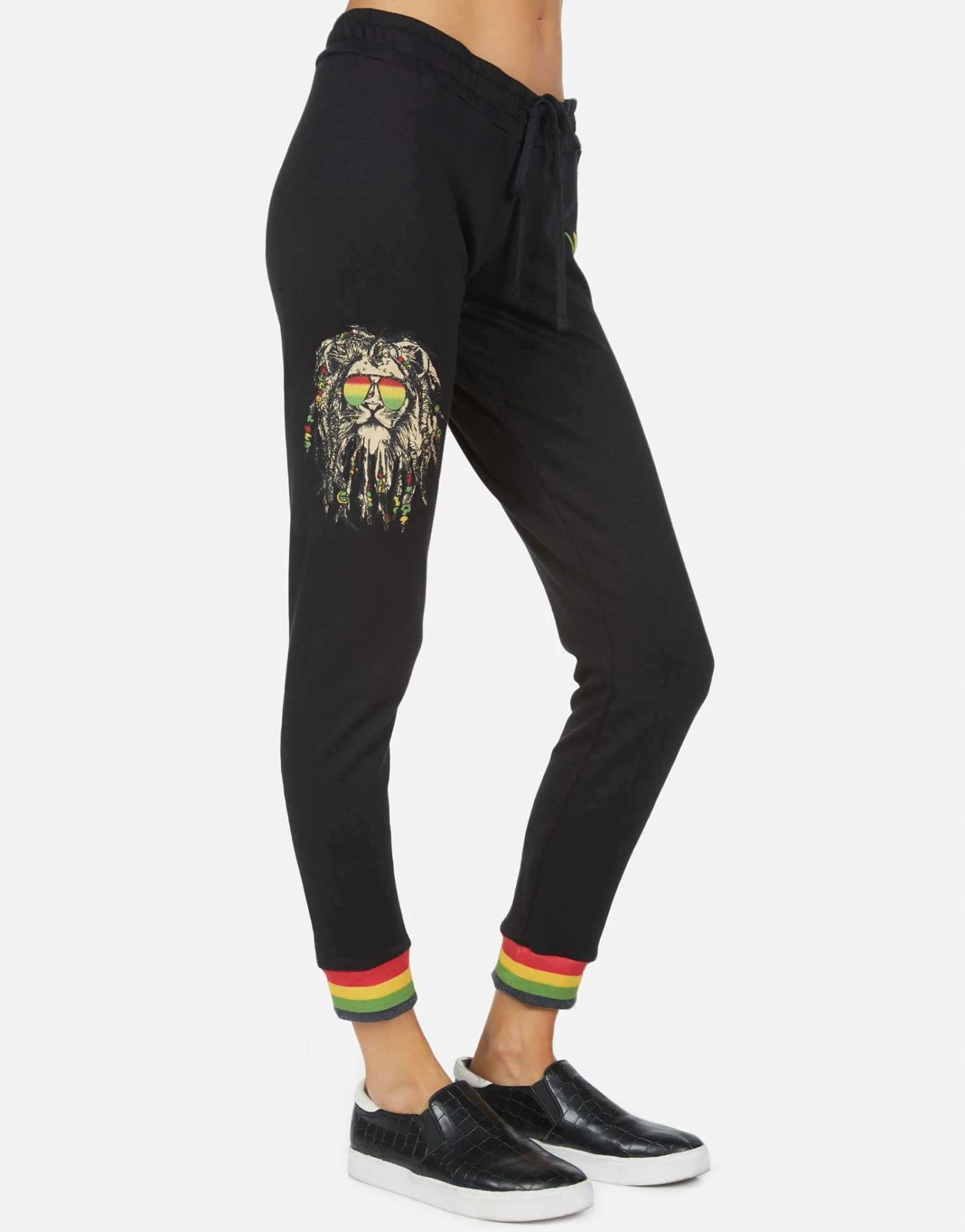 Rasta Lion Printed on Ultra Soft Lightweight Sweatpant in Black by Lauren Moshi.